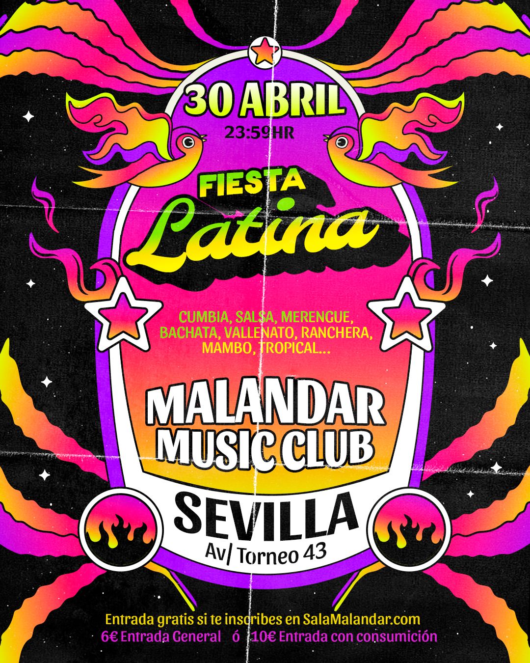 ¡Prepárate para una noche inolvidable llena de sabor y ritmo! Te invitamos a una increíble fiesta de música latina donde la cumbia, la salsa, el merengue y mucho más te harán mover en la pista de malandar. Ven a bailar, disfrutar y dejarte llevar por el calor y la alegría de nuestra cultura en una fiesta que no querrás perderte. ¡Lo mejor de la música tradicional latinoamericana en Malandar!