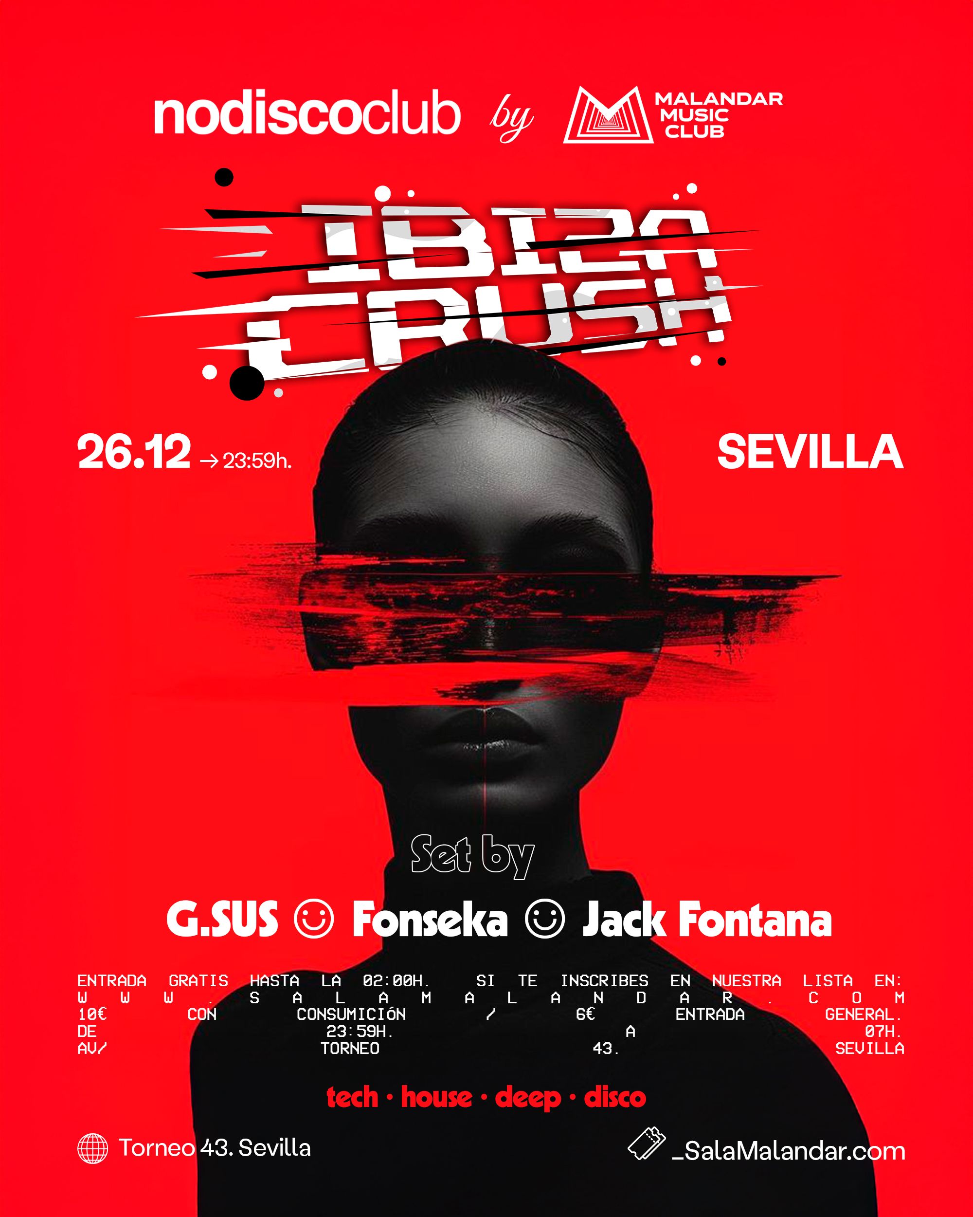 Entrada Gratis por lista de invitados hasta las 02:00h. / 6€ Entrada general | 10€ con consumición