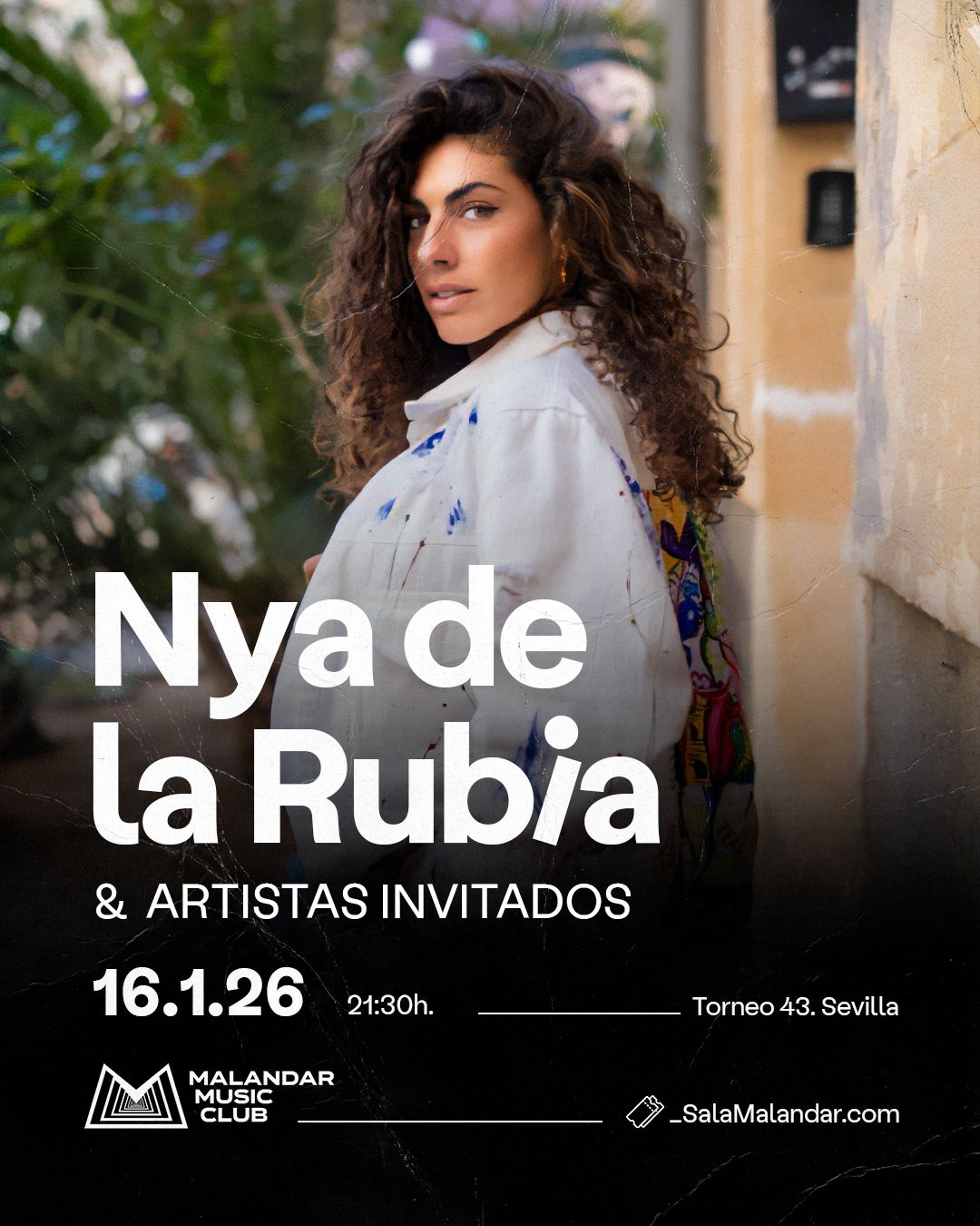 Nya de la Rubia nació y se crió en el lugar con más “Solera” de Sevilla, el barrio de Triana. A los 16 años comenzó a escribir sus propias canciones y tres años más tarde se trasladó a Madrid, lugar en el que comenzaría a vivir sus primeras experiencias en los escenarios. Allí descubriría el amor por cantar y el calor del publico. Las influencias musicales de Nya son muchas y muy variadas, pero lo que nunca falta en sus canciones es la fusión de la música urbana con el flamenco. Nya cuenta con muchas colaboraciones de artistas como Miguel Campello, Chambao, Muerdo, Moncho Chavea, Rasel, Barroso, La nueva Escuela, Omar Montes y con más de 2 millones de reproducciones en su tema “No se puede tener to” colaboración con el internacional Juan Magan y “Nao sou perfeito” colaboración con Nininho que tiene más de 10 millones de visualizaciones.