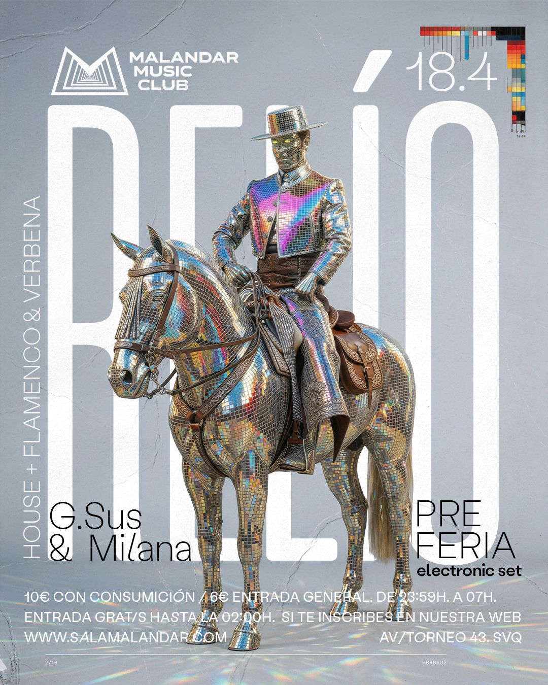 El sábado 18 de abril, G.SUS y Milana pondrán sonido a una noche donde la esencia de la feria se mezcla con la música electrónica más actual y bailable: guiños flamencos, ritmos electrónicos y toda la esencia de la Feria de Sevilla.